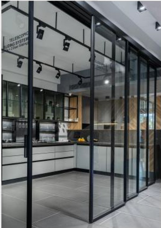 Our Telescopic Glass System offers a modern and space-efficient solution for large openings and seamless indoor-outdoor transitions. Designed with precision-engineered sliding tracks, the panels retract smoothly into one another, minimizing the need for floor space while maximizing visibility and access.